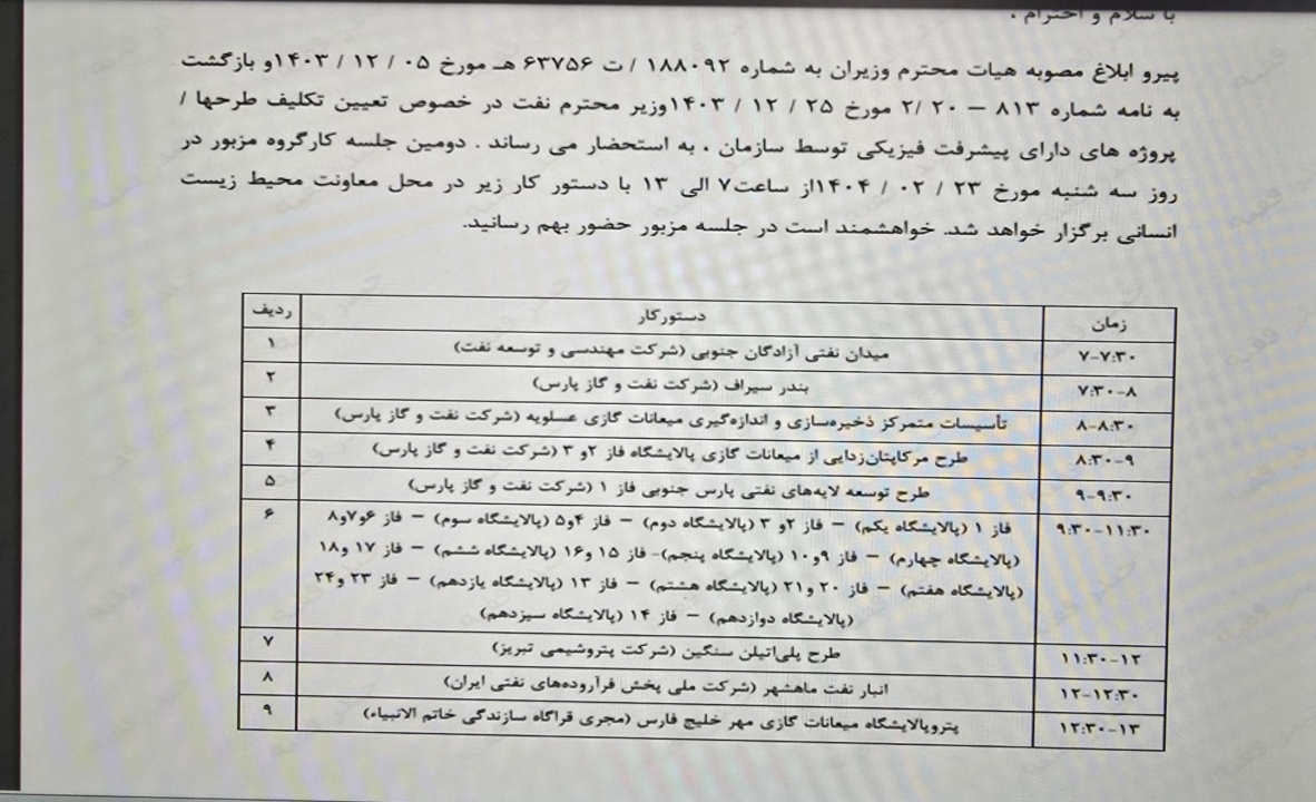 به گزارش رویداد نفت، امروز، مدیرکل محترم محیط زیست استان بوشهر، حوالی ظهر، دعوتنامهای رسمی برای شرکت در جلسهای فوقالعاده در تهران دریافت کردند؛ جلسهای که فردا ساعت ۷ صبح با موضوع تعیین تکلیف مهمترین پروژههای نفتی استان بوشهر، از جمله برخی پالایشگاههای پارس جنوبی، برگزار خواهد شد. پروژههایی که به دلیل نبود مجوز محیط زیستی در زمان اجرا، سالهاست با چالشهای جدی حقوقی روبهرو هستند، و حال قانونگذار برای حل این بحران، تنها سه ماه مهلت داده است.
