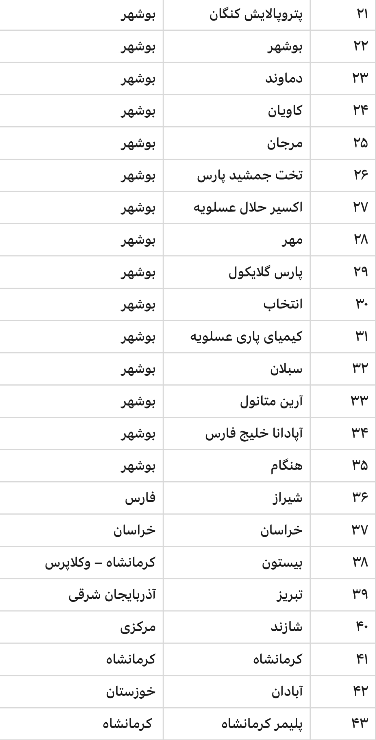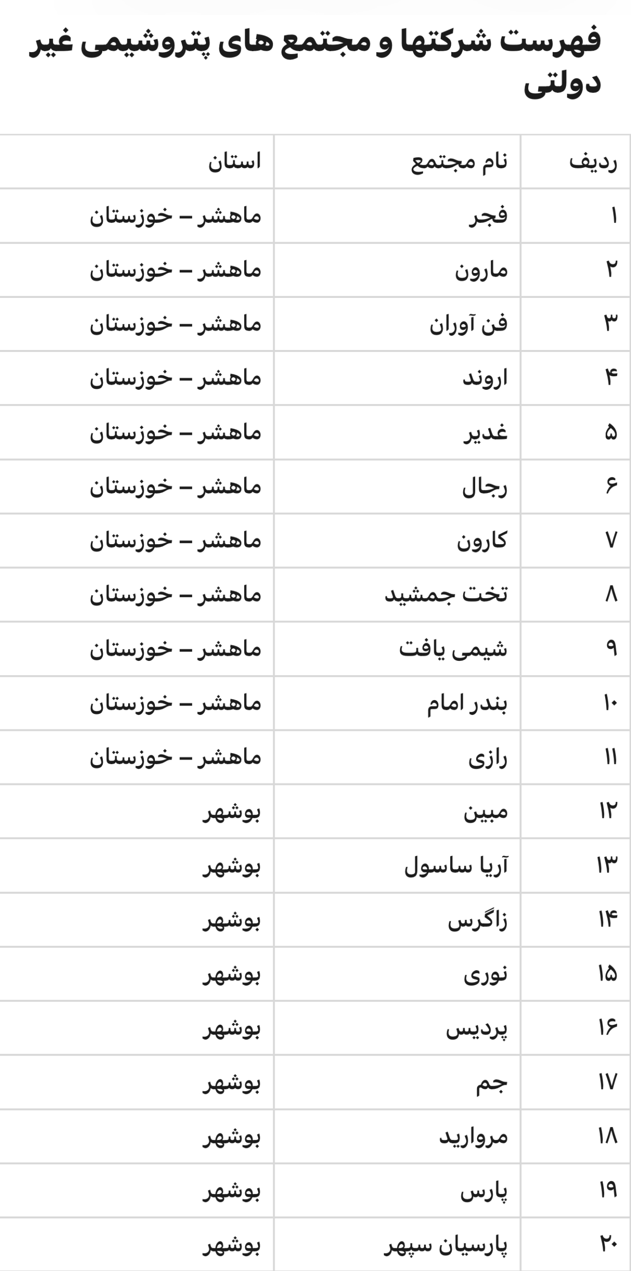 فهرست شرکت ها و مجتمع های پتروشیمی غیر دولتی که رسیدگی به دعاوی آن ها در صلاحیت دیوان عدالت اداری نیست