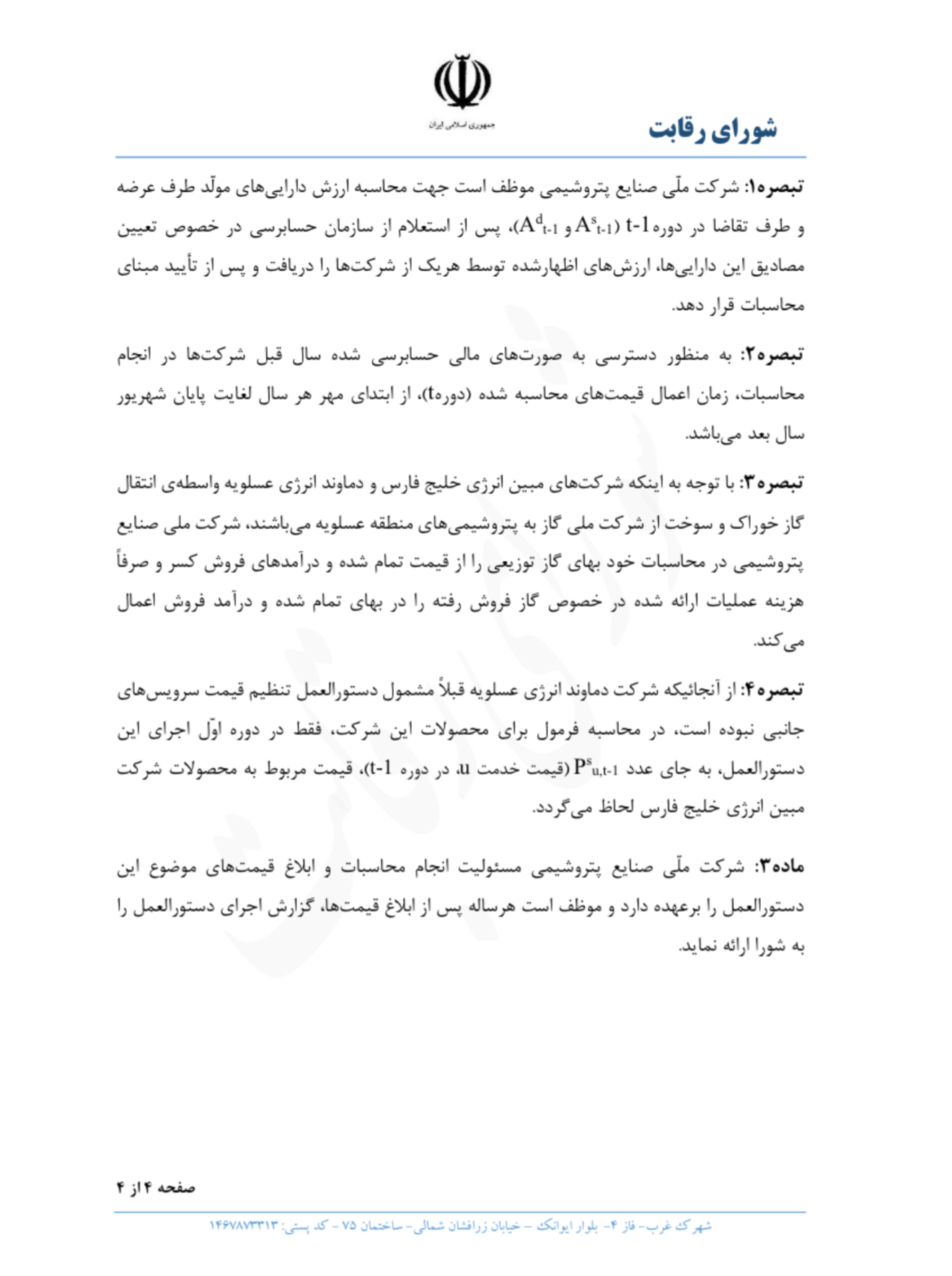 شورای رقابت دستورالعمل جدید تنظیم بازار خدمات جانبی پتروشیمی (یوتیلیتی) را تصویب کرد