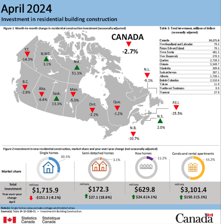The construction sector saw a 0.4 per cent decline, with decreased activity in the building of new single- and multi-family homes partly to blame.