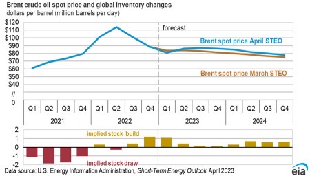 Despite OPEC+’s surprise production cut, the global oil market will remain in surplus this year and next as demand growth could be hurt by lower-than-expected economic growth in the coming months, the U.S. Energy Information Administration (EIA) said in its latest Short-Term Energy Outlook (STEO).
