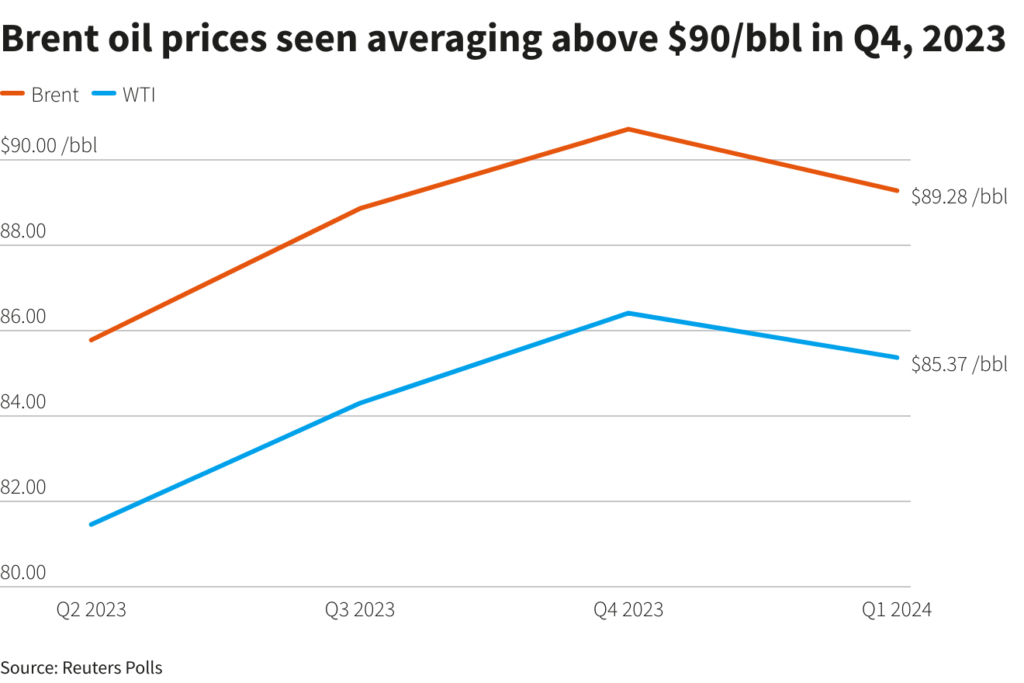 Brent is expected to average at $90.72 in the final quarter of this year, up from $85.78 and $88.86 in the previous two quarters, the poll showed.