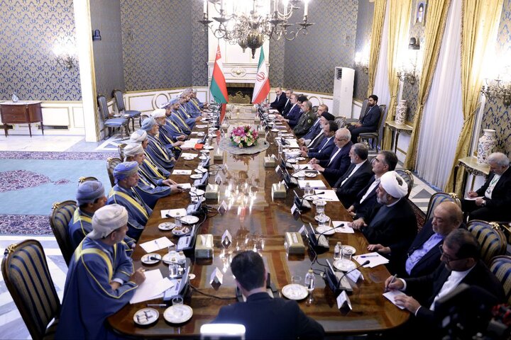 The president made the remarks in a meeting with Oman’s Sultan Haitham bin Tariq Al Said and his accompanying delegation, naming the sectors of energy, industry, trade, communications, defense and security affairs, road and rail lines, maritime transport and transit, and financial and monetary exchanges as capacities of the two countries for expanding their cooperation.
