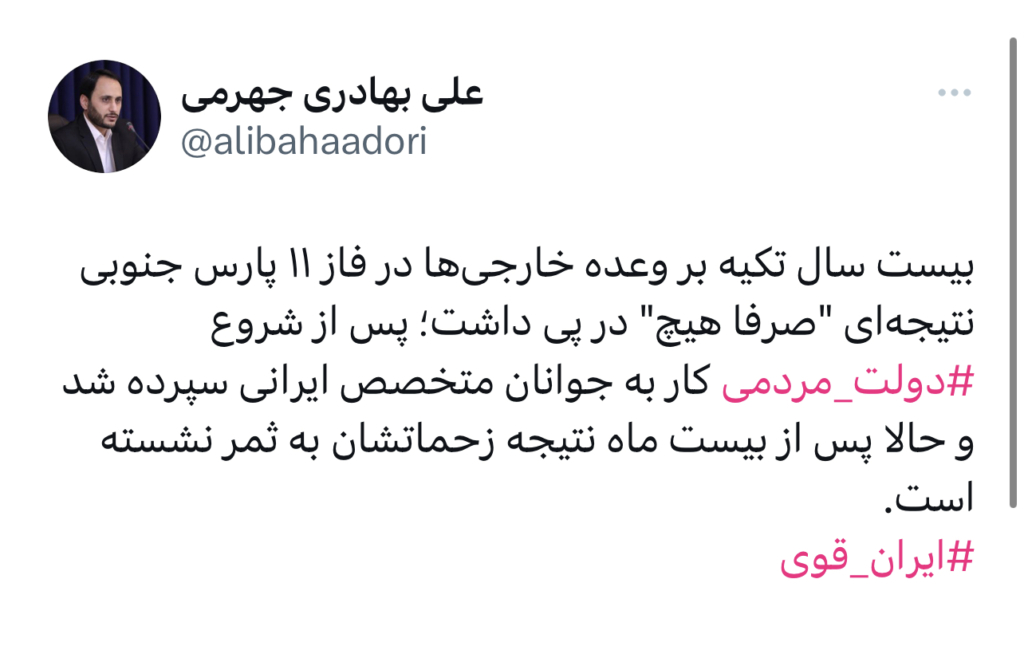 Posting his views on “X”, the new name of Twitter account, Ali Bahadori Jahromi added, “After taking office, the popular government assigned the task to young Iranian experts and their efforts have now borne fruit after 20 months.”